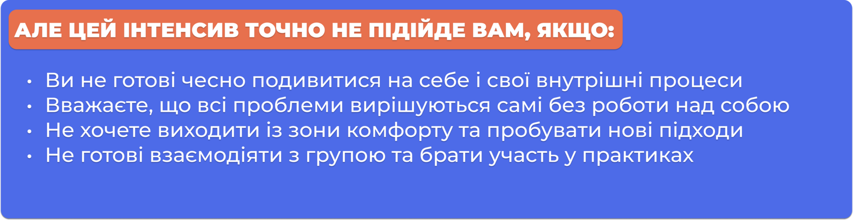 Інтенсив “Ризикуючи Бути Живим” - це можливість прожити власну трансформацію усвідомлено, крок за кроком.