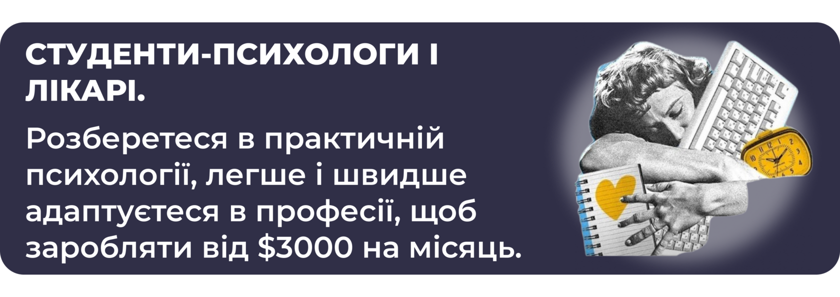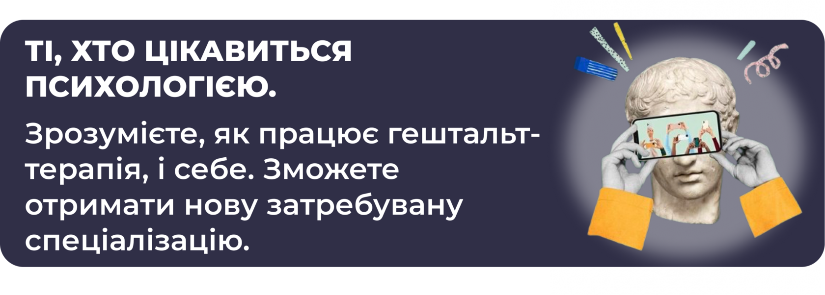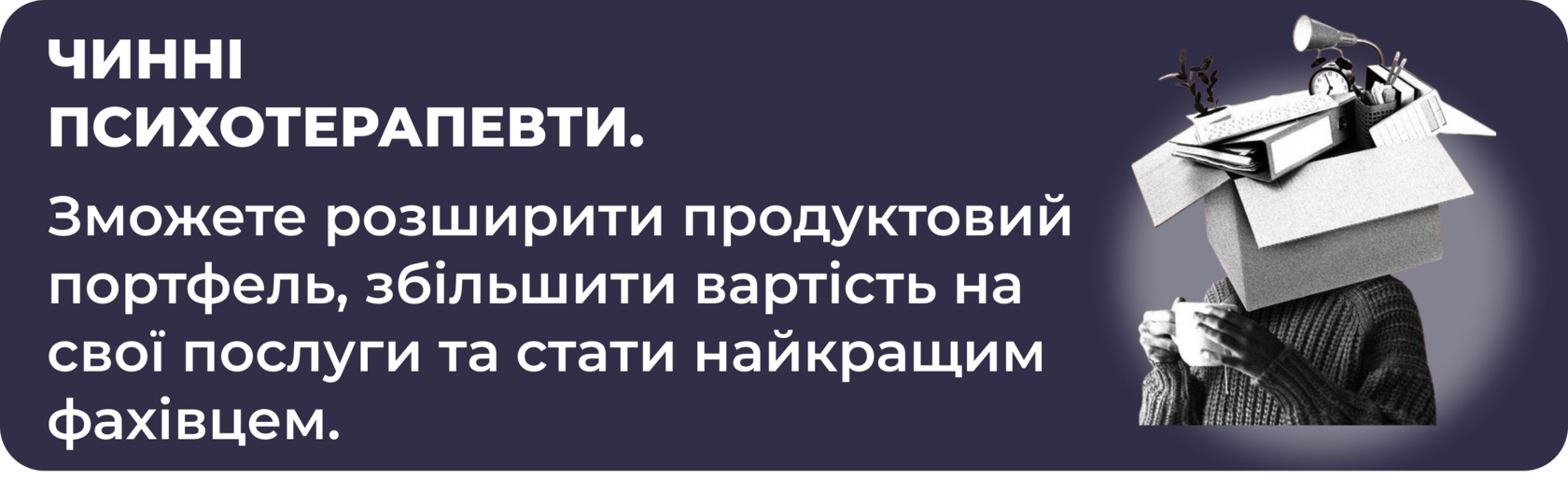 Основна перевага цього курсу — інтенсивний формат тривалістю 9 місяців, тоді як інші програми тривають до 3 років. Крім того, ви отримуєте практичні навички, що дозволяють працювати з клієнтами вже після завершення курсу.